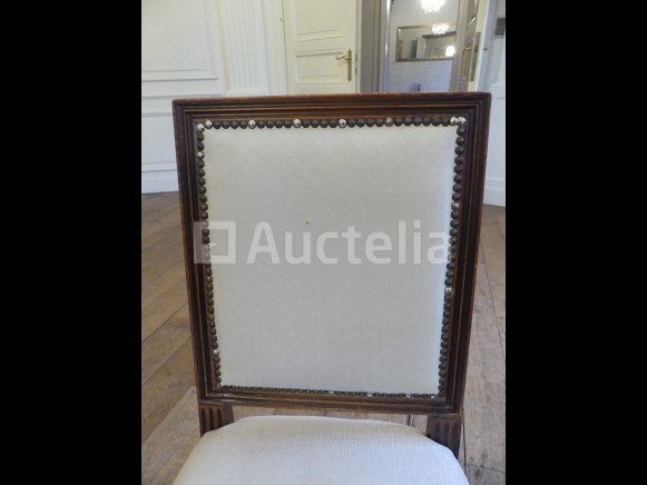 Louis 16 stijl beukenhouten stoelen Lengte: 48 cm Breedte: 48 cm Hoogte: 96 cm Aantal: +- 4 Receptiestoelen in beige stoffen Voorzien van een kunstlederen bekleding en 1 stoffen stoelbekleding Sommige moeten worden hersteld Opmerkingen: Wie het eerst komt, het eerst maalt