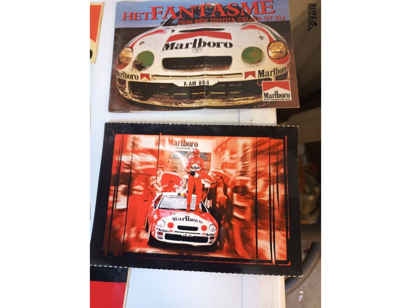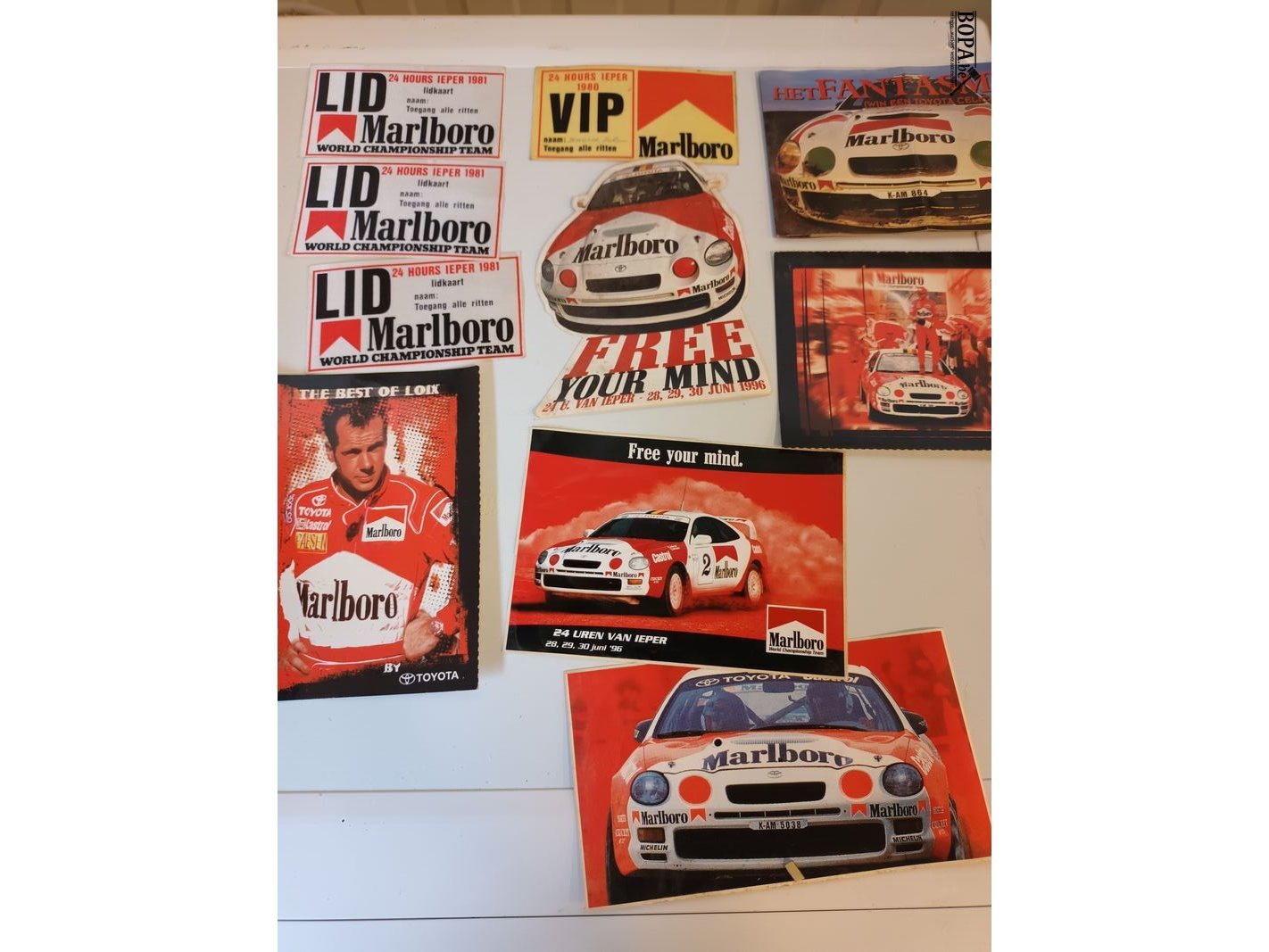 Marlboro verzamelitems. 10 stuks. 7 stickers, 2 postkaarten, 1 folder.