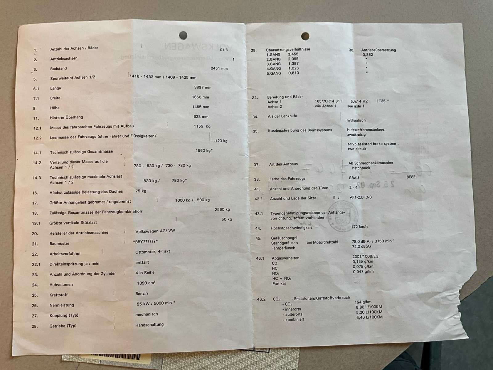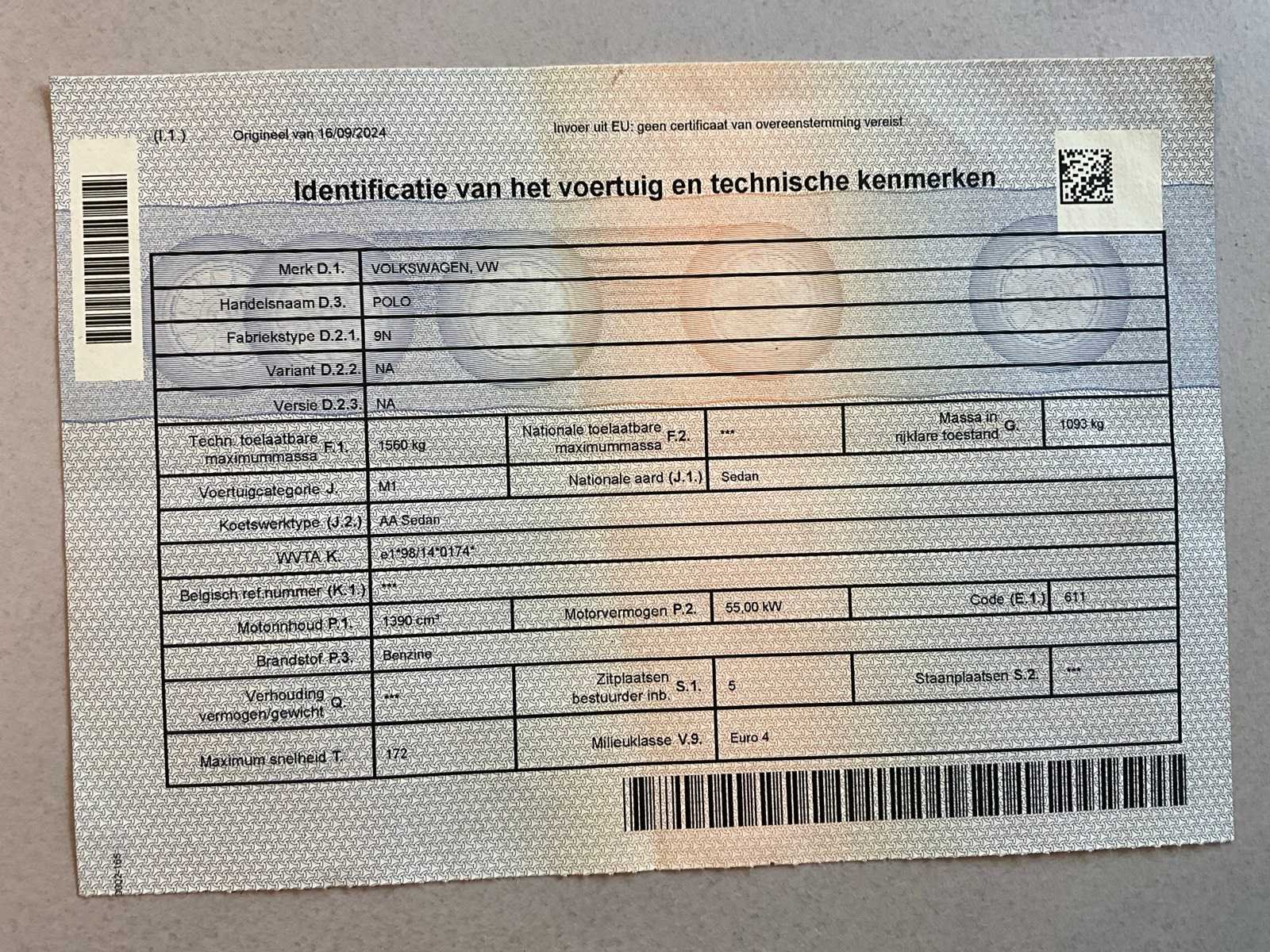 Merk: Volkswagen Model: Polo Bouwjaar: 2002 Afgelezen kilometerstand: 137321km Cilinderinhoud: 1390cc Vermogen (kW): 55kW Brandstof: benzine Datum eerste toelating: 27/9/2002 APK vervaldatum: 10/9/2026 Transmissie: Handgeschakeld Aantal sleutels: 2 CVO verklaring: true Start en rijdt: Ja Vavato voert geen technische keuring uit.: true Inschrijvingsbewijs - deel 1 : Aanwezig Inschrijvingsbewijs - deel 2: Niet aanwezig