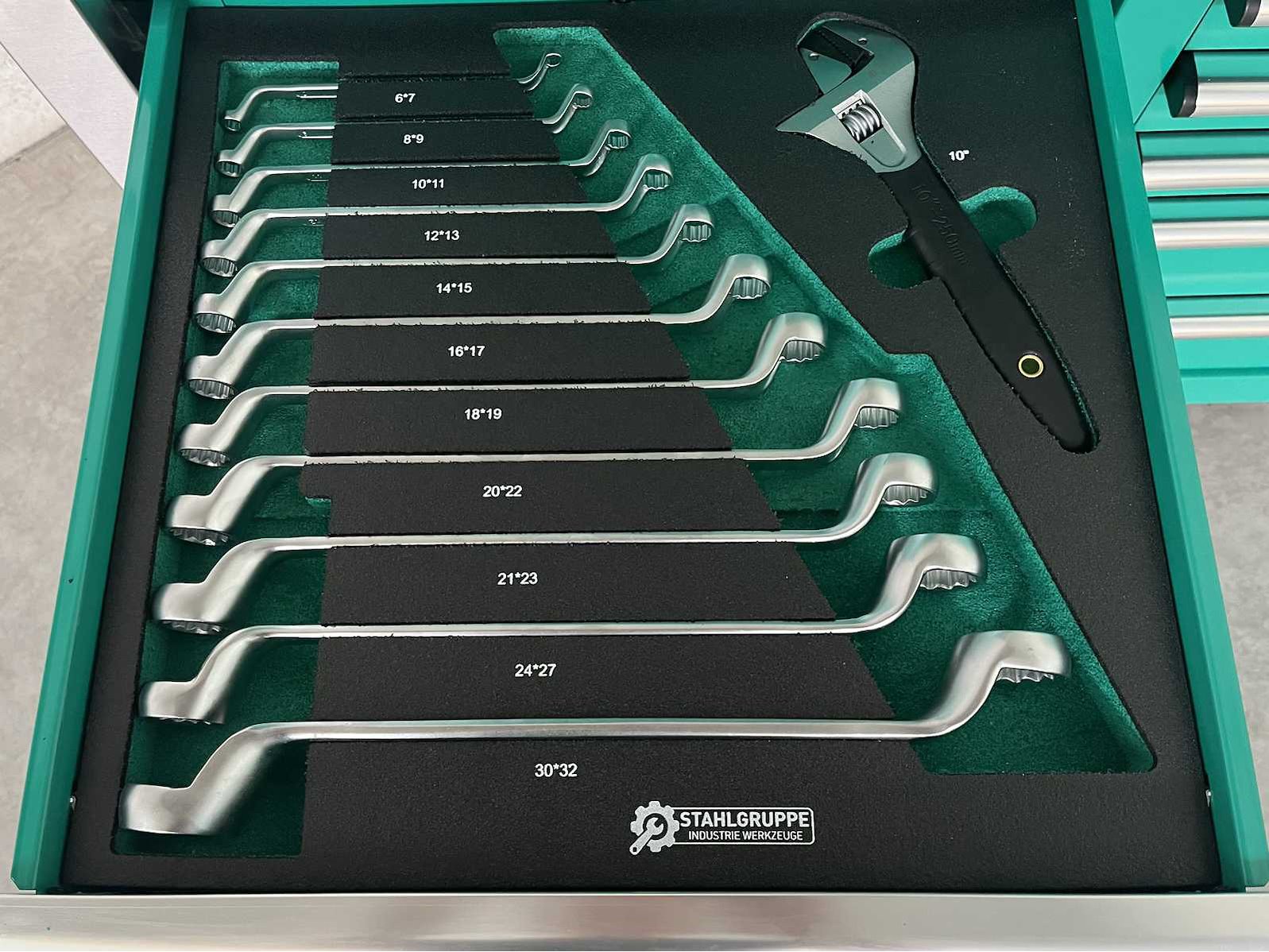 <li><b>Heavy Duty gereedschapswagen</b></li> <li><b>gebruik:</b> voor professionals</li> <li><b>aantal laden:</b> 11 laden</li> <li><b>aantal gevulde laden:</b> 9 gevulde laden</li> <li><b>gereedschap:</b> chroom-vanadium gereedschap</li> <li><b>inhoud:</b> <ul> <li>29-delige ring-steeksleutel set (6 mm - 50 mm)</li> <li>3 ratelsleutel sets met doppen & bitsen (1/4”, 3/8” & 1/2”)</li> <li>11-delige ring-ringsleutel set (6*7 mm - 30*32 mm)</li> <li>verstelbare moersleutel</li> <li>12-delige tangen set</li> <li>2 hamers & 4 vijlen</li> <li>puntslag en beitel set</li> <li>12 schroevendraaiers</li> <li>inbussleutels, Torxsleutels, precisiegereedschap</li> <li>21-delige T-sleutelset</li> <li>34-delige krachtdoppen set (12 mm - 50 mm) + Torx & inbus doppen & ratelsleutel 3/4,”</li> <li>LED-lamp, zaag, schaar, mes, meetgereedschappen</li> <li>enzovoort...</li> </ul> </li> <li><b>staat:</b> ongebruikt, in de originele verpakking</li> <li><b>afmetingen:</b> L 140 x B 60 x H 110 cm</li> Nee Merk: Stahlgruppe Type: SG56
