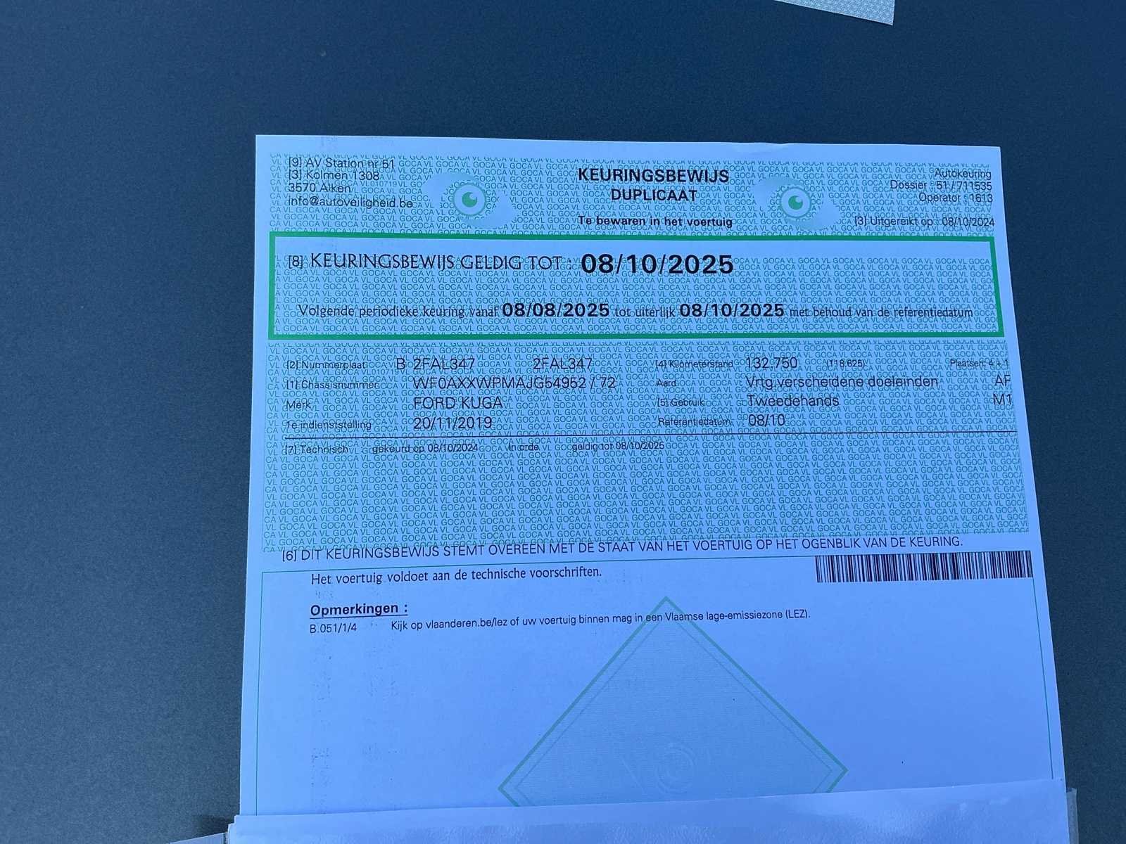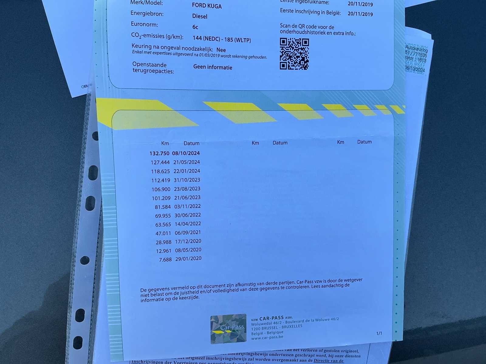 Laatst gekende kilometerstand volgens de carpass : 132750 Nee Kenteken: 2GAQ130 Merk: Ford Type: Kuga Model: Vignale Bouwjaar: 2019 Chassisnummer: WF0XXWPMAJG54952 Vermogen (kW): 110kW Brandstof: Diesel Aantal zitplaatsen: 5 Nationaliteit documenten: België Boorddocumenten aanwezig?: true