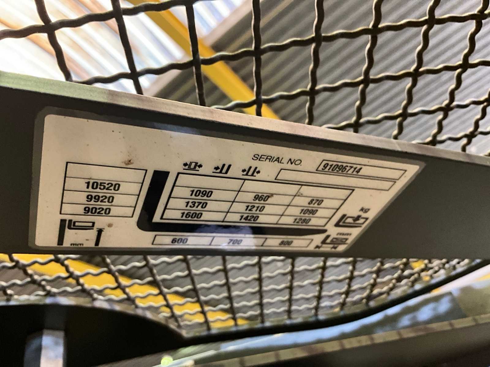 MAST REEDS GEDEMONTEERD!!, voorzien van hoogfrequent oplader Hawker, opstartcode 3333, sleutel niet van toepassing Nee Merk: Jungheinrich Type: ETV216 Bouwjaar: 2015 Serienummer: 91096714 Brandstof: Electrisch Mast: Triplex Soort band: Vulcolon Aantal wielen: 3 Afgelezen urenstand: 14290 Accu lader: true Free-lift: true Side-shift: true Triple mast: true Eigen gewicht: 4000kg Hefvermogen: 1600kg Lepellengte: 1150mm Hefhoogte: 10520mm Totale afmeting L: 1700mm Totale afmeting Breedte: 1270mm Totale afmeting Hoogte: 4200mm Elektrisch: true