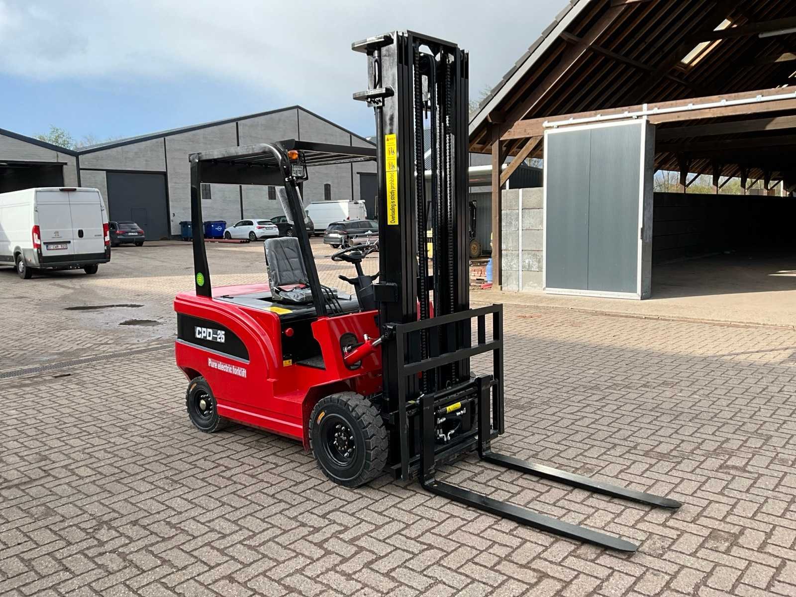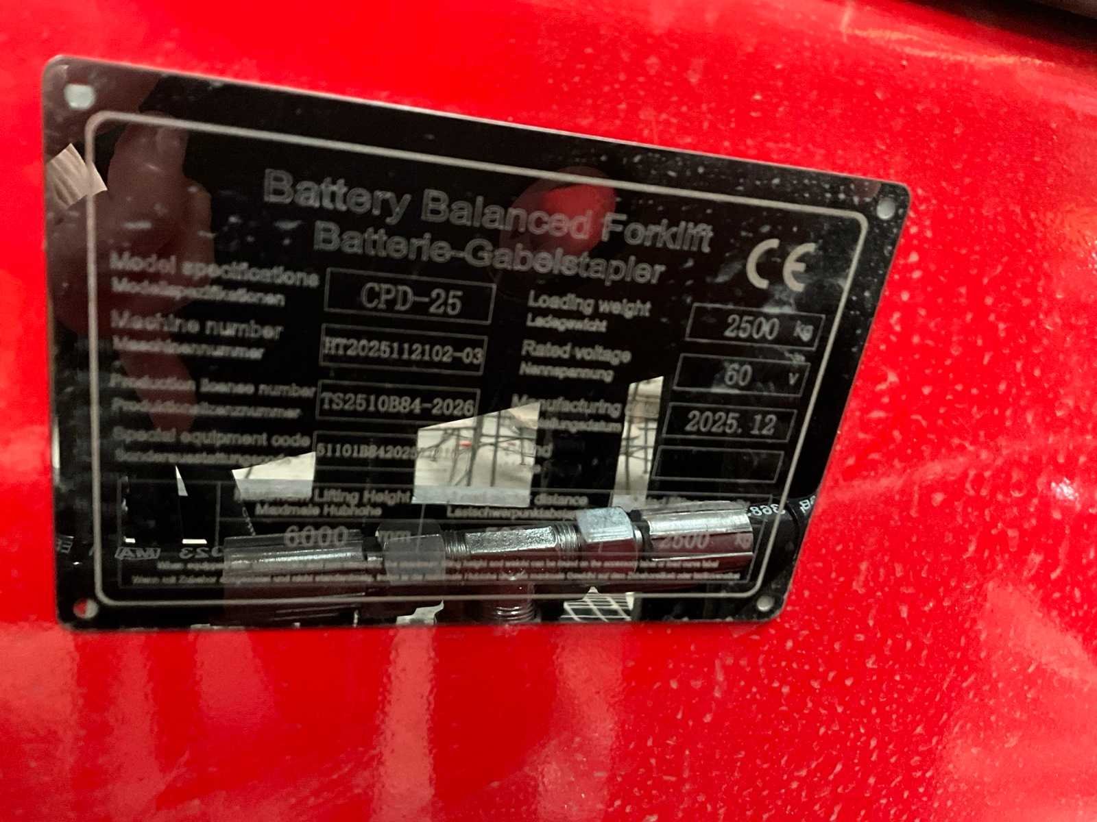 Incl. Oplader Nee Merk: HUATENG Type: CPD-25 Bouwjaar: 2025 Serienummer: HT2025112102-03 Afgelezen urenstand: 3 Side-shift: true Triple mast: true Hefvermogen: 2500kg Lepellengte: 1200mm Max. hefhoogte: 6000mm Vol rubber banden: true Minimale doorrijhoogte: 2610mm Totale afmeting L: 2400mm Totale afmeting Breedte: 1200mm