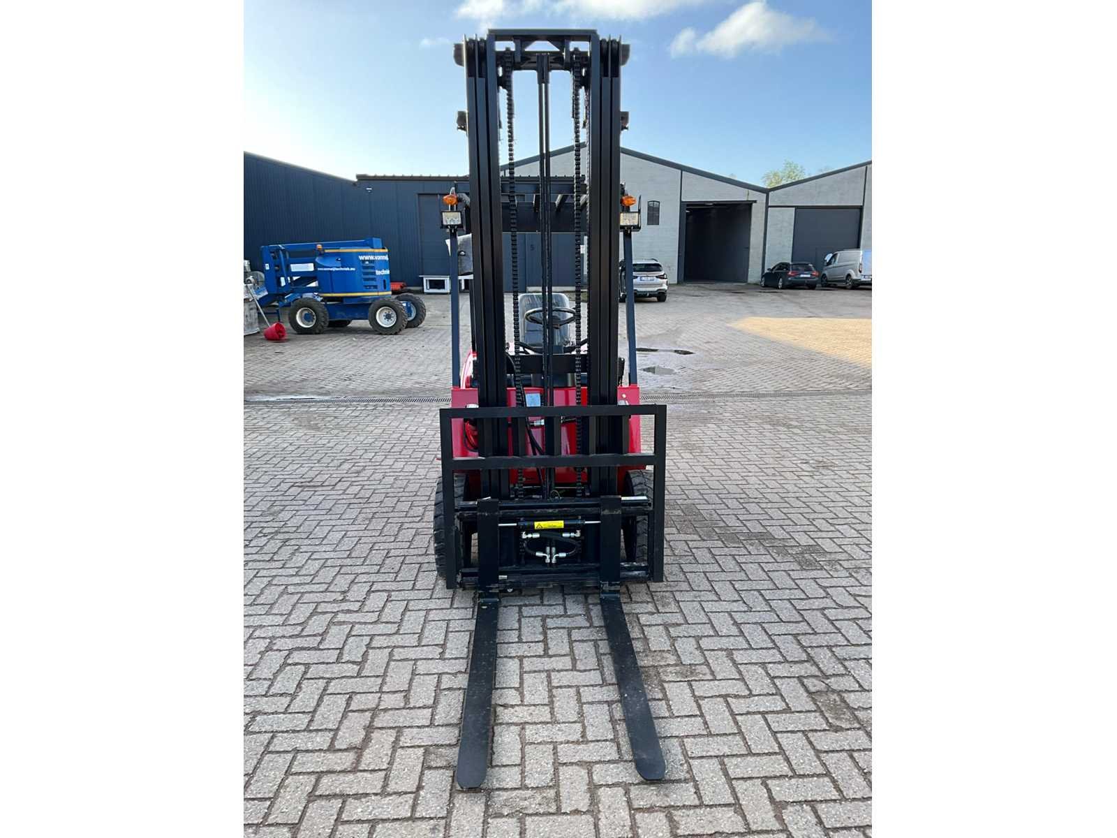 Incl. Oplader Nee Merk: HUATENG Type: CPD-25 Bouwjaar: 2025 Serienummer: HT2025112102-02 Side-shift: true Triple mast: true Hefvermogen: 2500kg Lepellengte: 1200mm Max. hefhoogte: 6000mm Vol rubber banden: true Minimale doorrijhoogte: 2610mm Totale afmeting L: 2400mm Totale afmeting Breedte: 1200mm