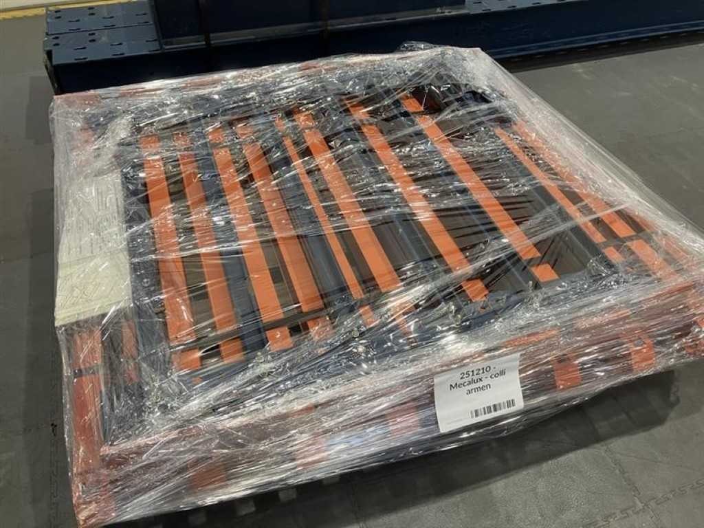 Mecalux enkelzijdige draagarmstelling Lengte: 2800mm (4 kolommen met 870mm asafstand) Hoogte: 4200mm (voorzien van 4 armen per kolom) Armlengte: 1000mm 4 enkelzijdige kolommen 4200 x 1000 16 armen 1000 x 80 x 50 + schoringsset No Merk: Mecalux Type: Draagarmstelling Aantal secties: 3 Sectie afm. b: 870mm Sectie diepte: 1000mm Sectie afm. h: 4200mm Aantal staanders: 4 Aantal liggers: 4