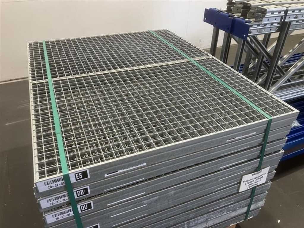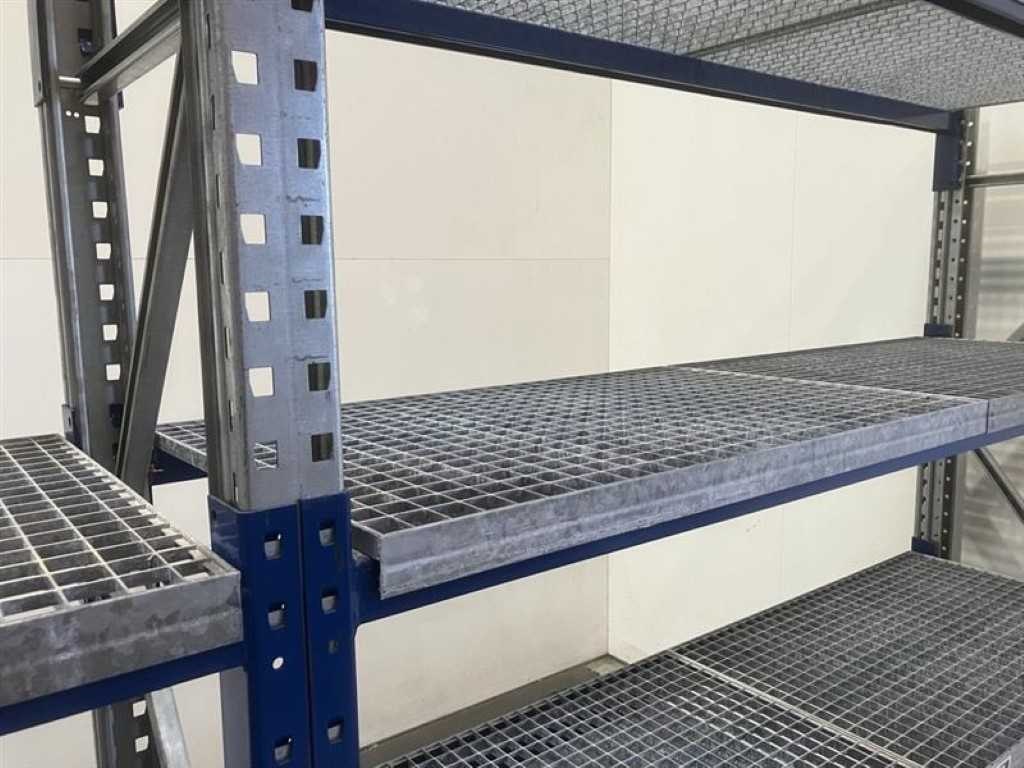 Schafer np grootvakstelling (OCCASIE) Lengte: 10550mm (5 modules van 2020mm) Hoogte: 2100mm (voorzien van 4 niveaus) Diepte: 600mm 6 ladders 2100 x 600 mm 40 liggers 2020 x 50 mm 40 roosters 970 x 600 mm No Merk: Schafer Type: Grootvakstelling Aantal secties: 6 Sectie afm. b: 2020mm Sectie diepte: 600mm Sectie afm. h: 2100mm Aantal staanders: 6 Aantal liggers: 40 Aantal legborden: 40 Totale afmeting L: 10550cm Totale afmeting Breedte: 600cm Totale afmeting Hoogte: 2100cm