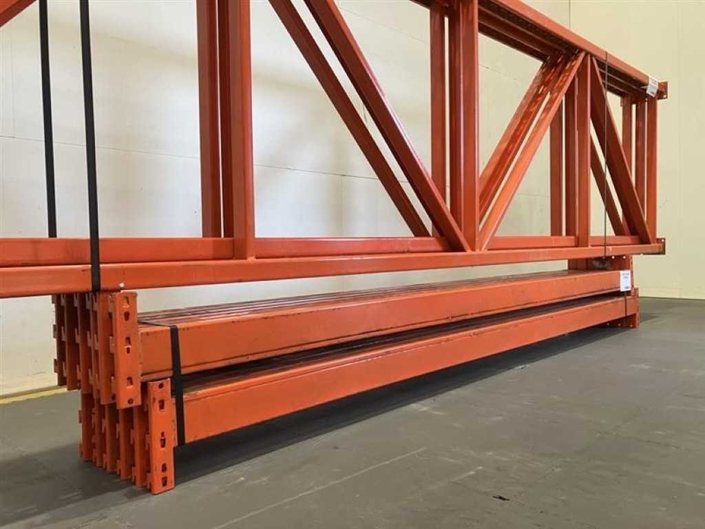 Dexion palletstelling (OCCASIE) Lengte: 5640mm (2 modules van 2700mm) Hoogte: 4000mm (voorzien van 3 niveaus) Diepte: 1000mm 3 ladders 4000 x 1000mm 12 liggers 2700 x 100mm No Merk: Dexion Type: Palletstelling Aantal secties: 2 Sectie afm. b: 2700mm Sectie diepte: 1000mm Sectie afm. h: 4000mm Aantal staanders: 3 Aantal liggers: 12