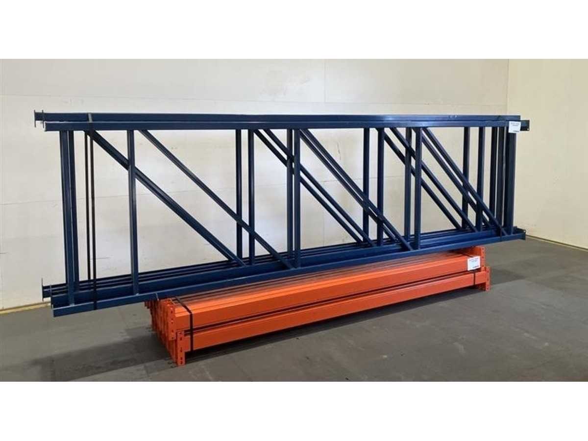 Dexion palletstelling (OCCASIE) Lengte: 8420mm (3 modules van 2700mm) Hoogte: 4000mm (voorzien van 4 niveaus) Diepte: 1100mm 4 ladders 4000 x 1100 24 liggers 2700 x 100 No Merk: Dexion Type: Palletstelling Aantal secties: 3 Sectie afm. b: 2700mm Sectie diepte: 1100mm Sectie afm. h: 4000mm Aantal staanders: 4 Aantal liggers: 24