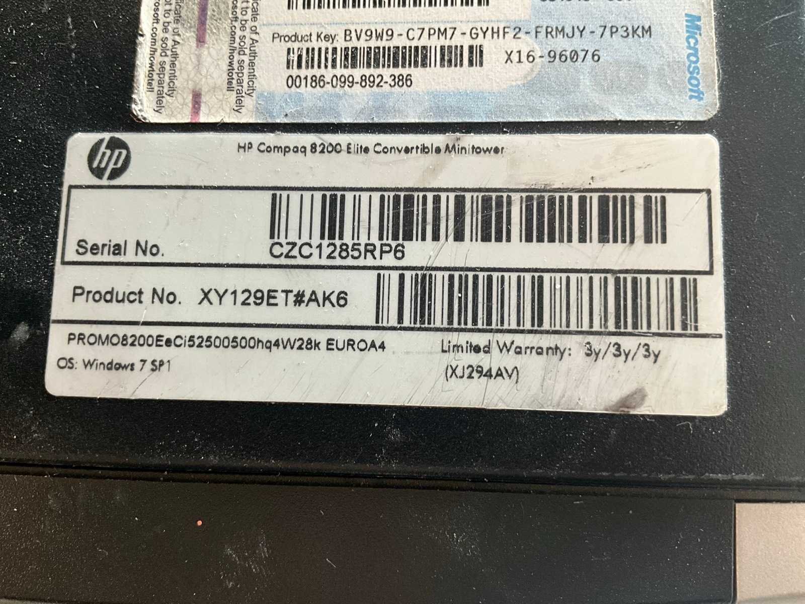Gereset en vrij van data, geen operating systems OS meer. No Merk: HP Type: Compaq 8200 Elite Model: Convertible Mini tower Met voedingskabel: true