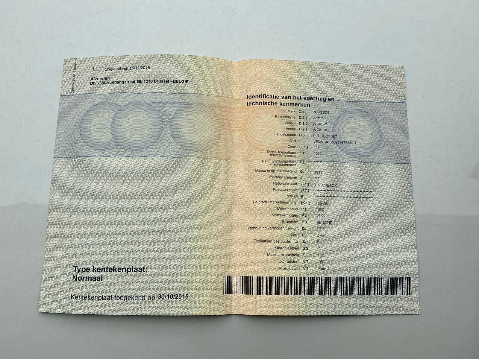Inschrijvingsbewijs deel 1, niet aanwezig, gelijkvormigheidsattest niet aanwezig Nee Merk: Peugeot Model: 207 Bouwjaar: 2007 Afgelezen kilometerstand: 118996km Cilinderinhoud: 1360cc Vermogen (kW): 54kW Brandstof: benzine Chassisnummer: Vf3wckfvc33767243 Aantal deuren: 5 Technische fiche: true Inschrijvingsbewijs - deel 1 : Aanwezig Inschrijvingsbewijs - deel 2: Aanwezig