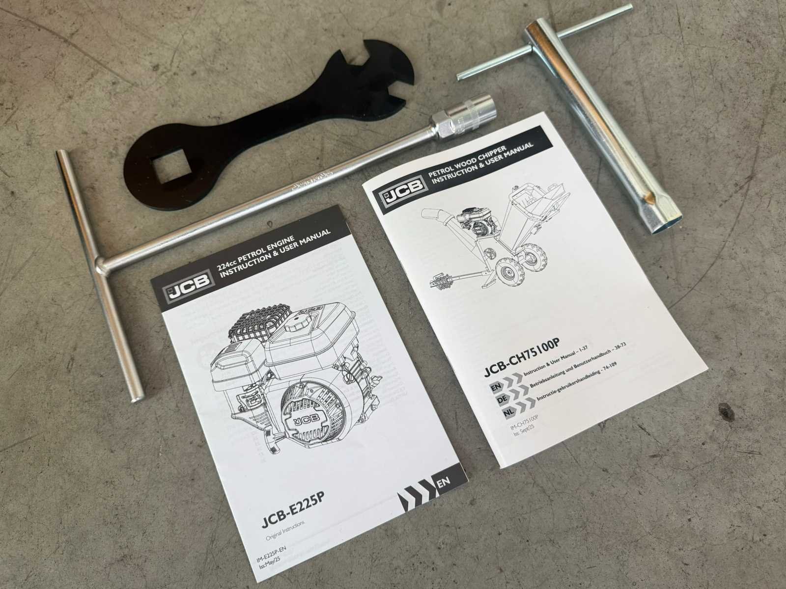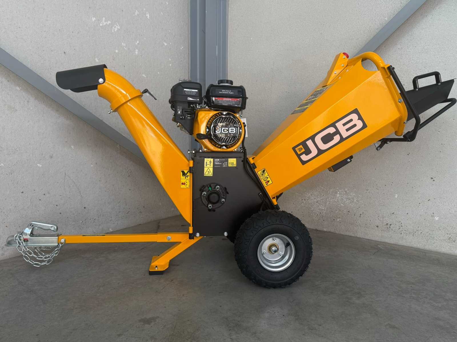 <ul> <li><strong>houthakselaar</strong></li> <li><strong>motor:</strong> JCB-E225P benzinemotor</li> <li><strong>motortype:</strong> 4-takt OHV, 1-cilinder</li> <li><strong>motorinhoud:</strong> 224 cc</li> <li><strong>motorvermogen:</strong> 7,5 pk</li> <li><strong>starten:</strong> trekstarter</li> <li><strong>aandrijving:</strong> riemaandrijving</li> <li><strong>hakmethode:</strong> trommelsysteem (drum)</li> <li><strong>schijfdiameter:</strong> 350 mm</li> <li><strong>schijfsnelheid:</strong> 2800 rpm</li> <li><strong>messen:</strong> dubbele omkeerbare hakmessen</li> <li><strong>max. takdiameter:</strong> 100 mm</li> <li><strong>invoeropening:</strong> 450 × 378 mm</li> <li><strong>invoerkanaal:</strong> 148 × 223 mm</li> <li><strong>uitwerpbuis:</strong> 360° draaibaar</li> <li><strong>veiligheid:</strong> noodstopknop en veiligheidsbeugel</li> <li><strong>brandstof:</strong> benzine</li> <li><strong>brandstoftank:</strong> 3,6 liter</li> <li><strong>motorolie:</strong> SAE 30 / 15W40</li> <li><strong>oliecapaciteit:</strong> 600 ml</li> <li><strong>onderstel:</strong> verrijdbaar chassis</li> <li><strong>wielen:</strong> luchtbanden</li> <li><strong>wieldiameter:</strong> 14,5 inch (368 mm)</li> <li><strong>trekinrichting:</strong> ATV-trekstang (niet wegtoegelaten)</li> <li><strong>geluidsniveau:</strong> 118 dB</li> <li><strong>afmetingen:</strong> 2279 × 651 × 860 mm</li> <li><strong>gewicht netto:</strong> 120 kg</li> <li><strong>meegeleverd:</strong> handleiding en gereedschapsset</li> <li><strong>staat:</strong> ongebruikt, in houten kist</li> <li><strong>afmetingen kist:</strong> 910 x 565 x 860 mm</li> <li><strong>gewicht kist:</strong> 148 kg</li> Nee Merk: JCB Type: CH75100P