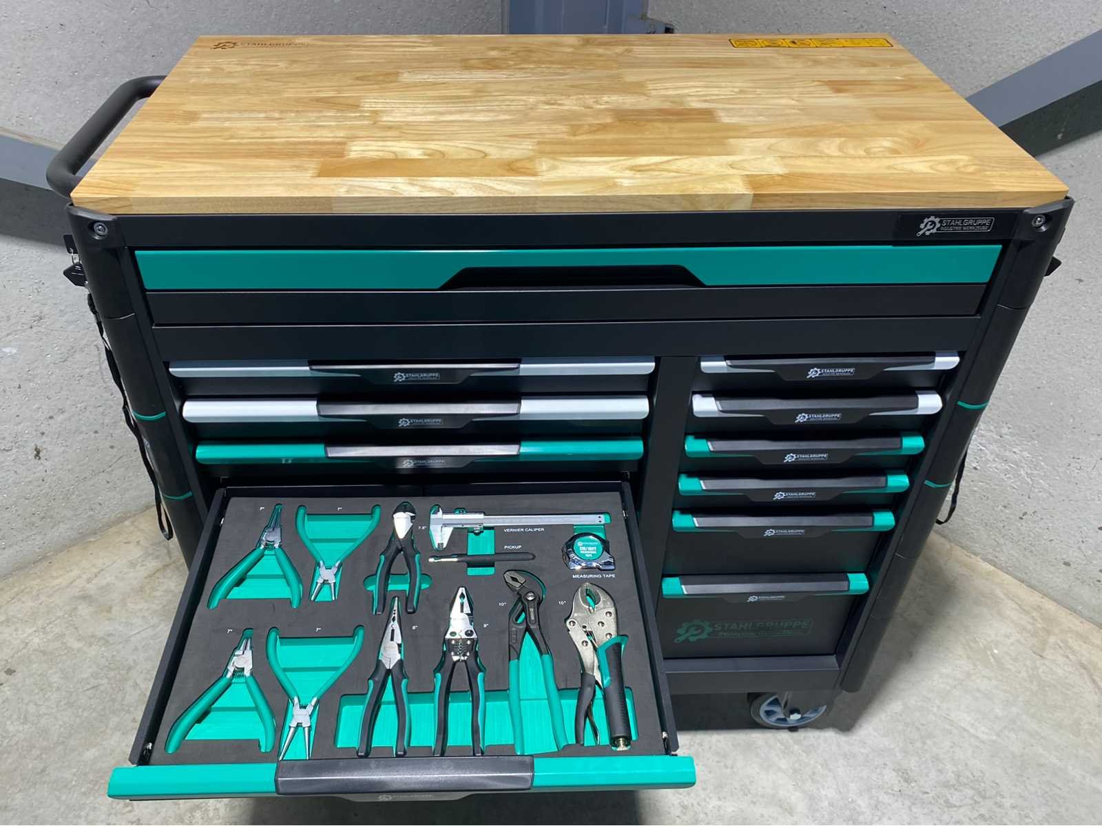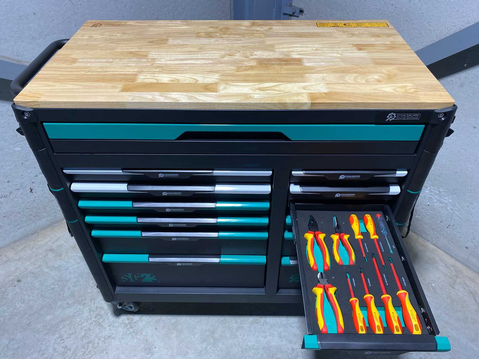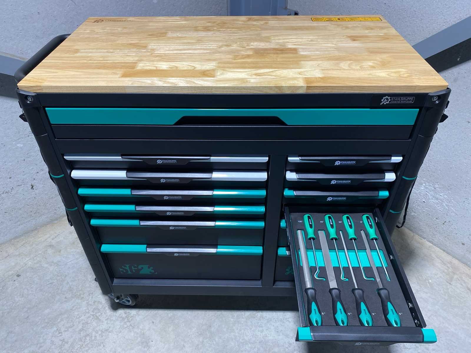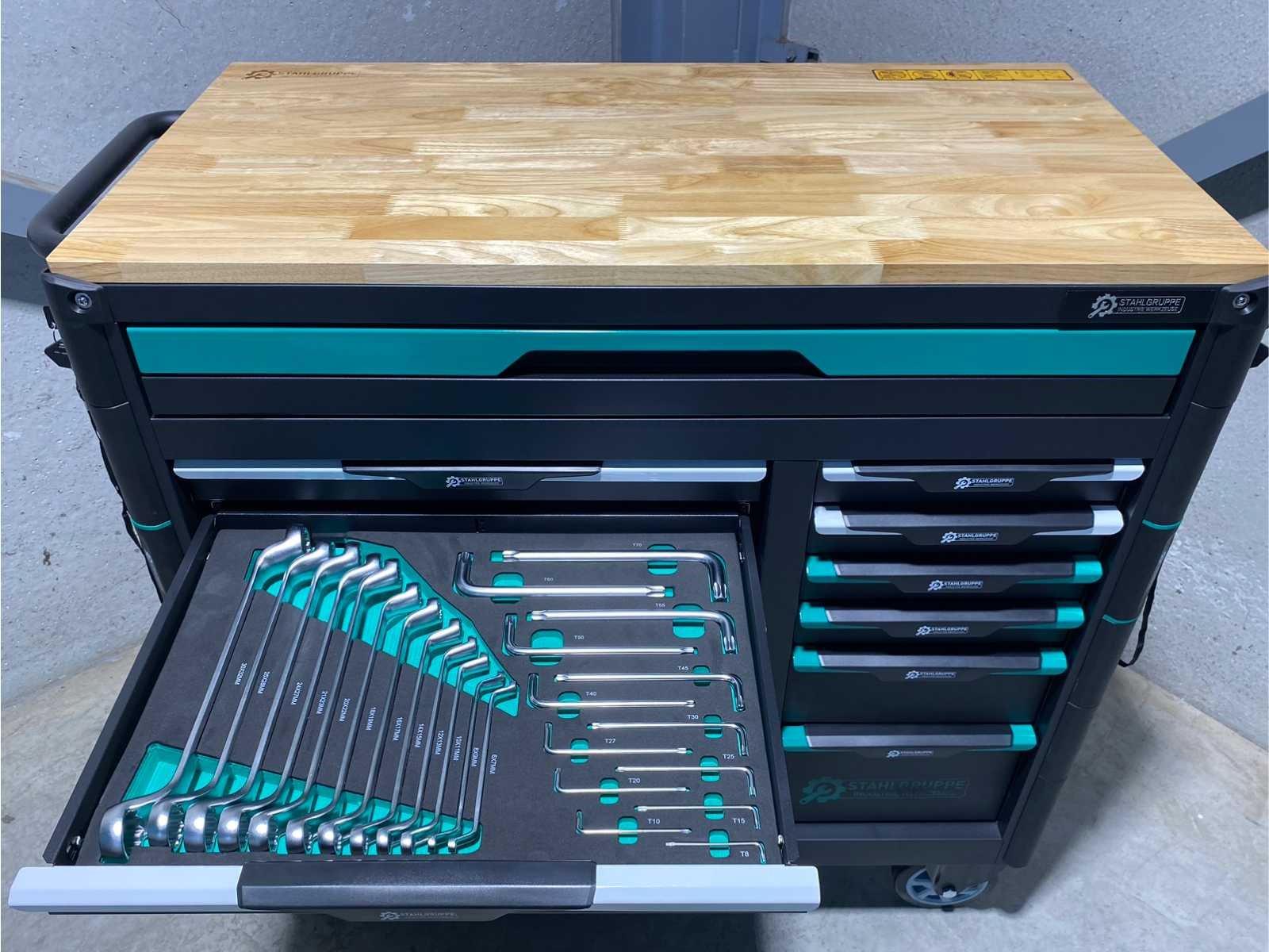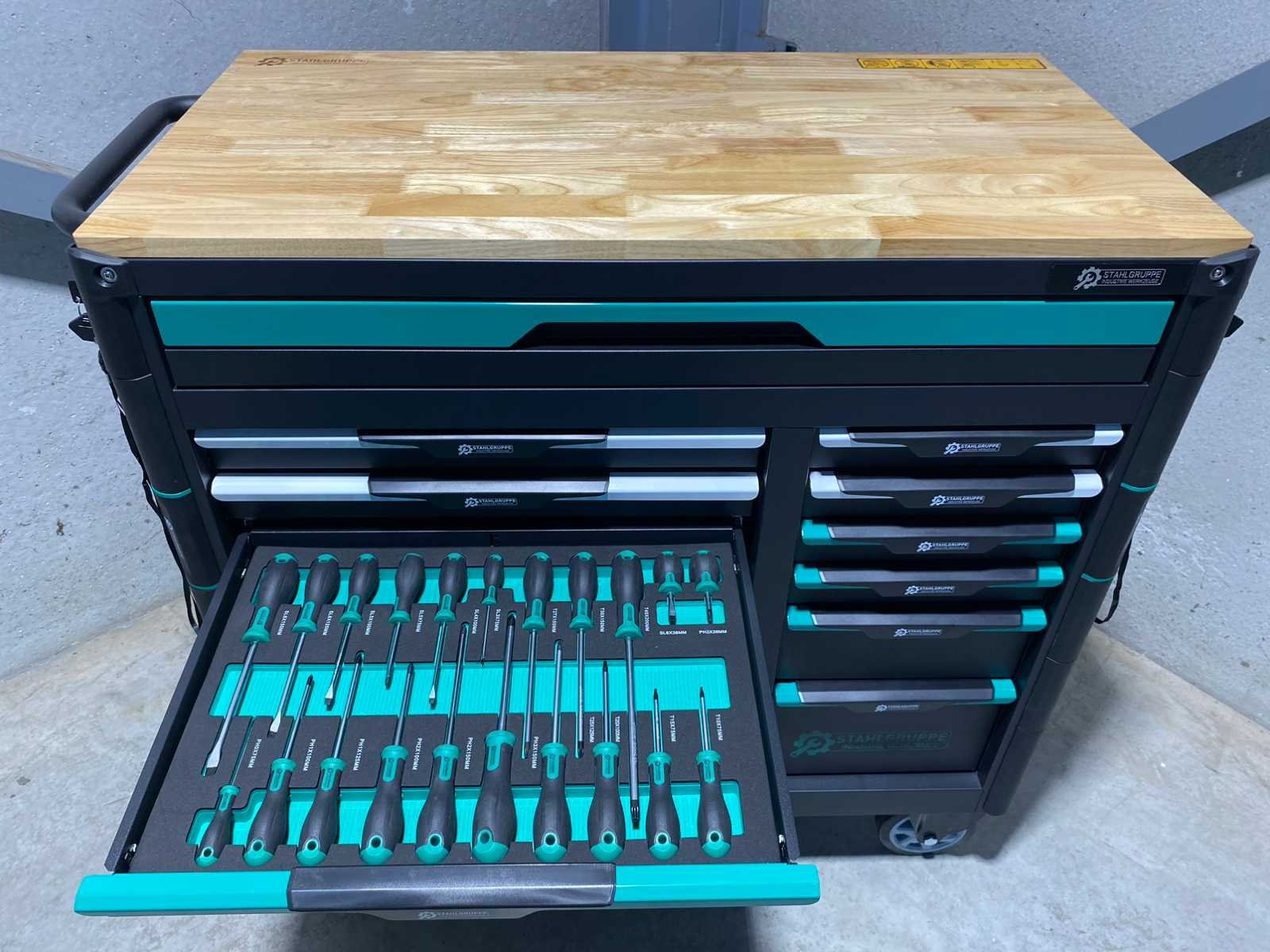 <ul> <li><strong>Merk:</strong> Stahlgruppe</li> <li><strong>Type:</strong> SG23</li> <li><strong>Aantal laden:</strong> 13 laden</li> <li><strong>Aantal gevulde laden:</strong> 11 gevulde laden</li> <li><strong>Materiaal:</strong> Chrome Vanadium</li> <li><strong>Inhoud:</strong> <ul> <li>2 dopsleutelsets (1/2” & 1/4”)</li> <li>momentsleutel (40-220 Nm)</li> <li>ring- steeksleutelset (6-32 mm)</li> <li>ringratel-steeksleutelset (8-19 mm)</li> <li>ring-ringsleutelset (6-32 mm)</li> <li>Inbussleutels (1,5-10 mm)</li> <li>Torxsleutels (T8-T70)</li> <li>schroevendraaiers (21 stuks)</li> <li>diverse tangen (9 stuks)</li> <li>schuifmaat (0-150 mm * 0,02 mm)</li> <li>beitels en pendrijvers (9 stuks)</li> <li>diverse hamers (3 stuks)</li> <li>T-greep Torxsleutels (T15-T45)</li> <li>T-greep Inbussleutels (2-10 mm)</li> <li>Chroom-Molybdeen krachtdoppen (10-24 mm)</li> <li>T-greep dopsleutels (7-14 mm)</li> <li>VDE-gereedschappen (10 stuks)</li> <li>vijlen en hakenset (8 stuks)</li> <li>enzovoort...</li> </ul> </li> <li><strong>afmetingen:</strong> L 112 x D x 55 x H 110 cm</li> <li><strong>Staat:</strong> ongebruikt, in de originele verpakking</li> </ul> Nee Merk: Stahlgruppe Type: SG23