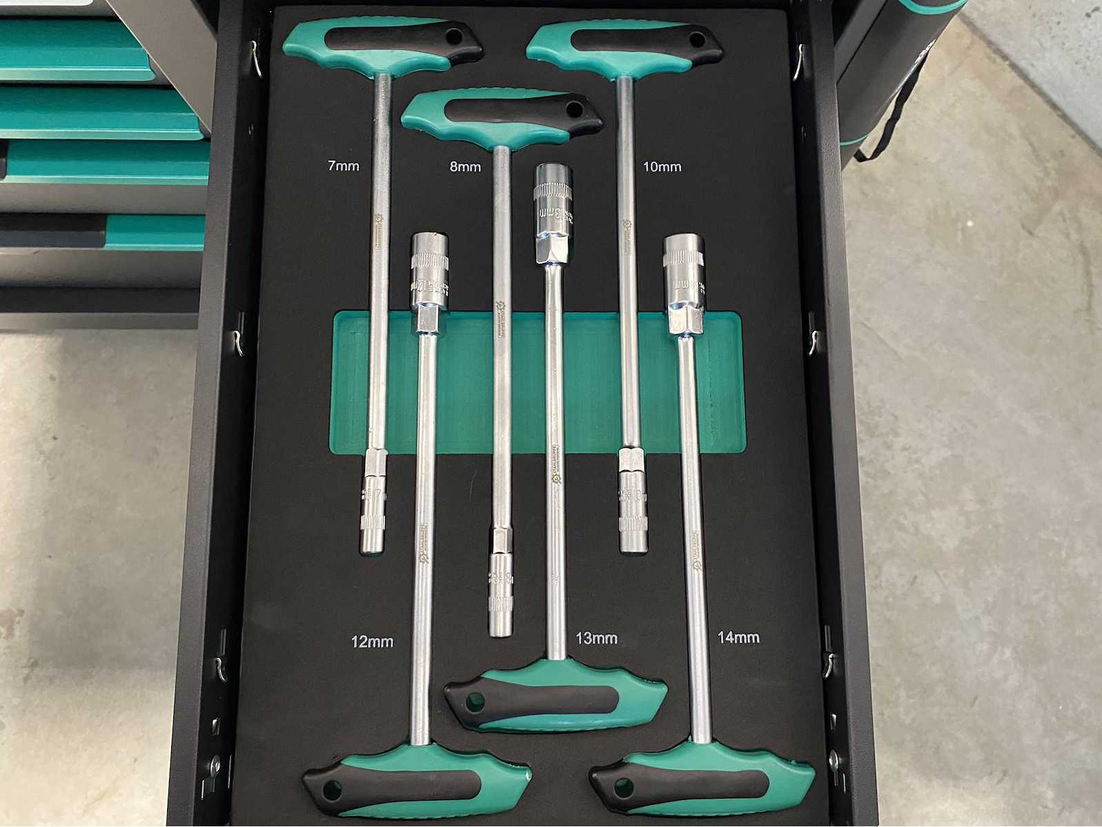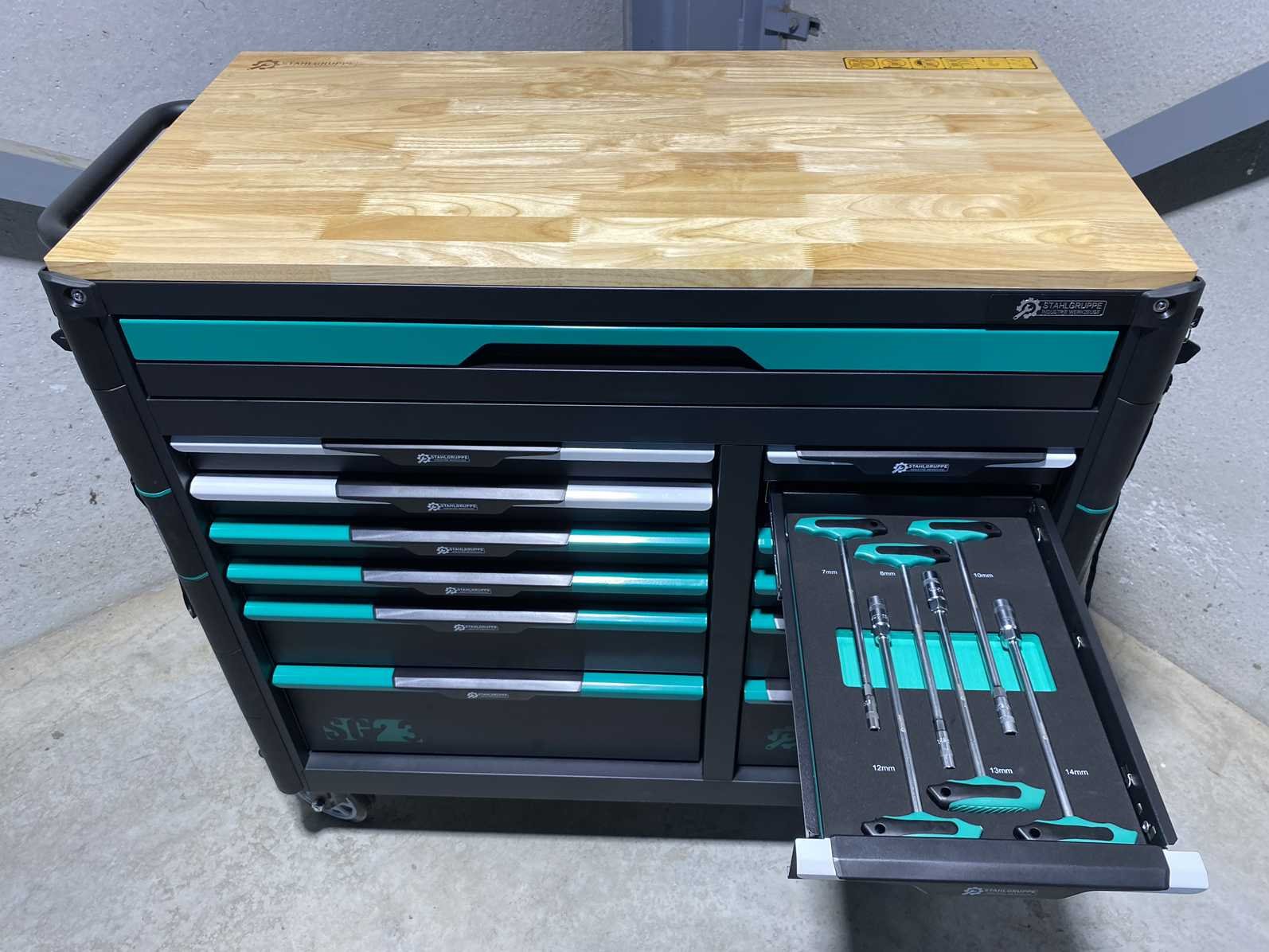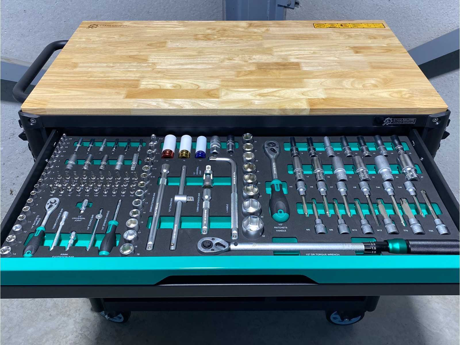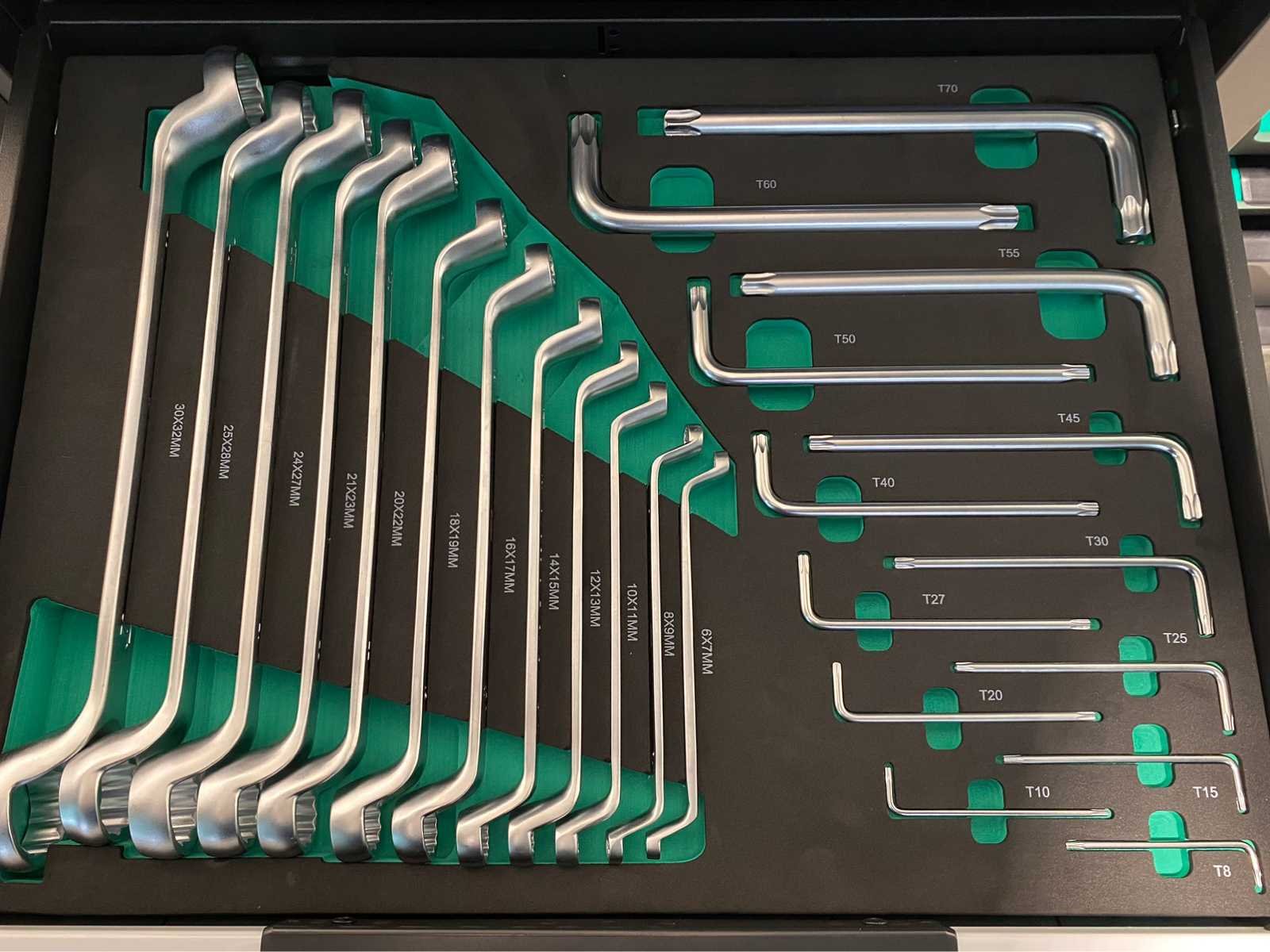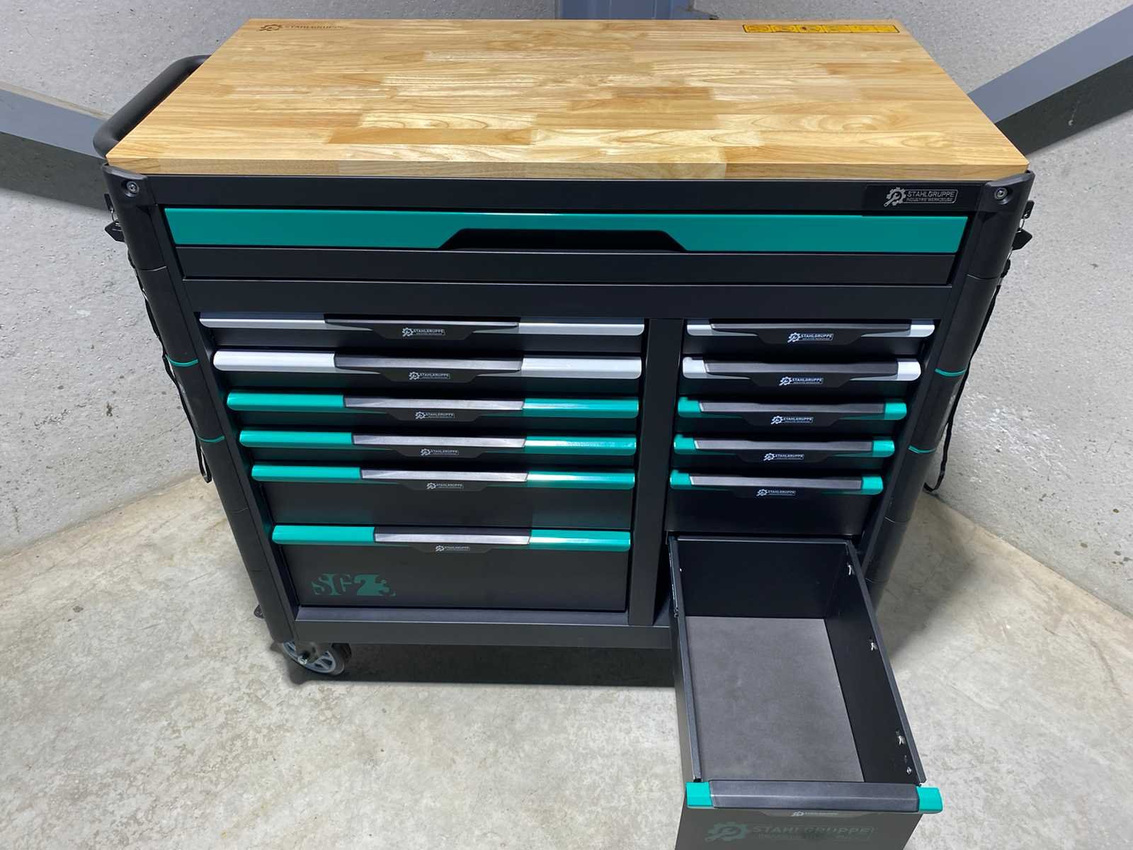 <ul> <li><strong>Merk:</strong> Stahlgruppe</li> <li><strong>Type:</strong> SG23</li> <li><strong>Aantal laden:</strong> 13 laden</li> <li><strong>Aantal gevulde laden:</strong> 11 gevulde laden</li> <li><strong>Materiaal:</strong> Chrome Vanadium</li> <li><strong>Inhoud:</strong> <ul> <li>2 dopsleutelsets (1/2” & 1/4”)</li> <li>momentsleutel (40-220 Nm)</li> <li>ring- steeksleutelset (6-32 mm)</li> <li>ringratel-steeksleutelset (8-19 mm)</li> <li>ring-ringsleutelset (6-32 mm)</li> <li>Inbussleutels (1,5-10 mm)</li> <li>Torxsleutels (T8-T70)</li> <li>schroevendraaiers (21 stuks)</li> <li>diverse tangen (9 stuks)</li> <li>schuifmaat (0-150 mm * 0,02 mm)</li> <li>beitels en pendrijvers (9 stuks)</li> <li>diverse hamers (3 stuks)</li> <li>T-greep Torxsleutels (T15-T45)</li> <li>T-greep Inbussleutels (2-10 mm)</li> <li>Chroom-Molybdeen krachtdoppen (10-24 mm)</li> <li>T-greep dopsleutels (7-14 mm)</li> <li>VDE-gereedschappen (10 stuks)</li> <li>vijlen en hakenset (8 stuks)</li> <li>enzovoort...</li> </ul> </li> <li><strong>afmetingen:</strong> L 112 x D x 55 x H 110 cm</li> <li><strong>Staat:</strong> ongebruikt, in de originele verpakking</li> </ul> Nee Merk: Stahlgruppe Type: SG23