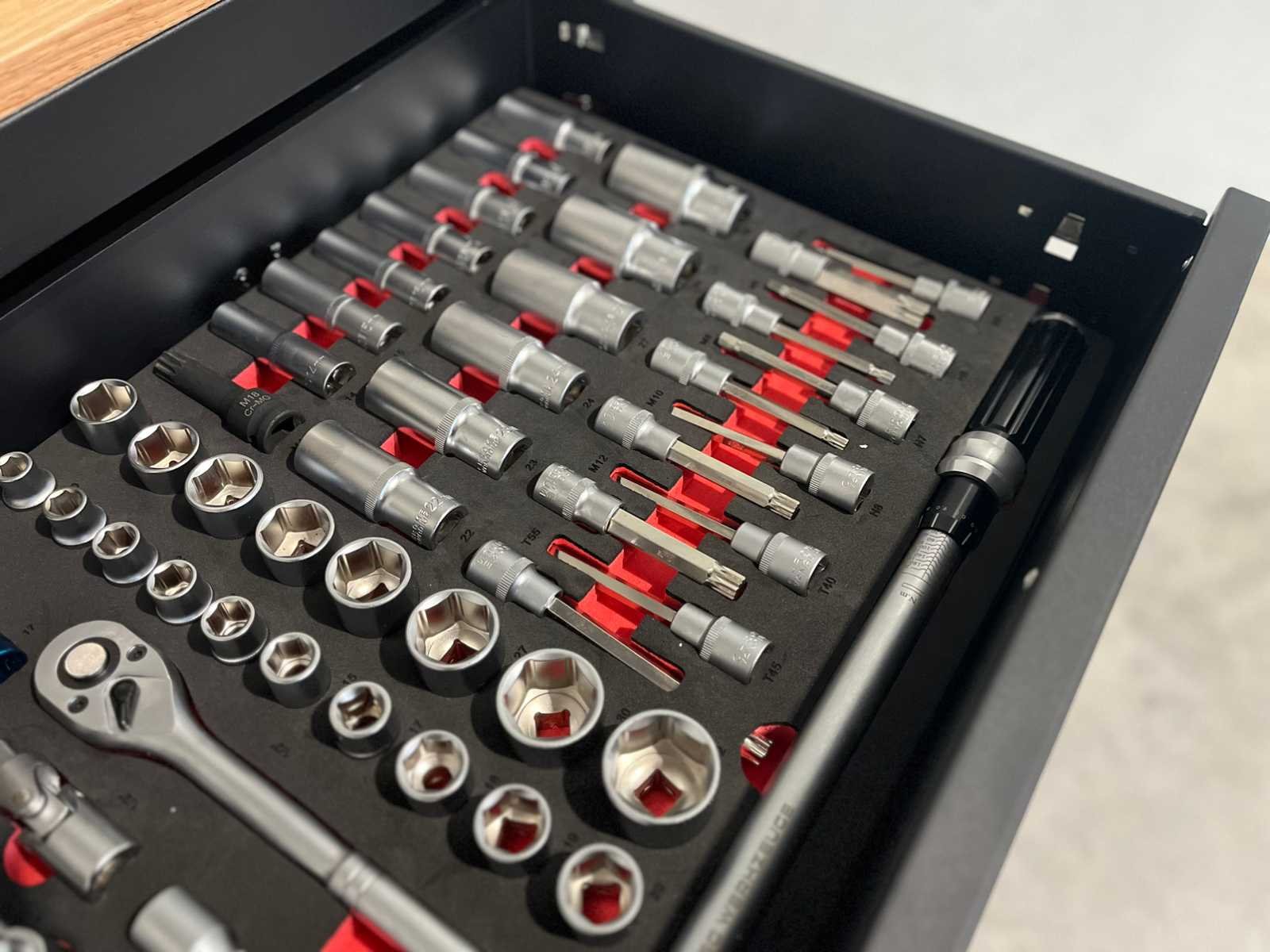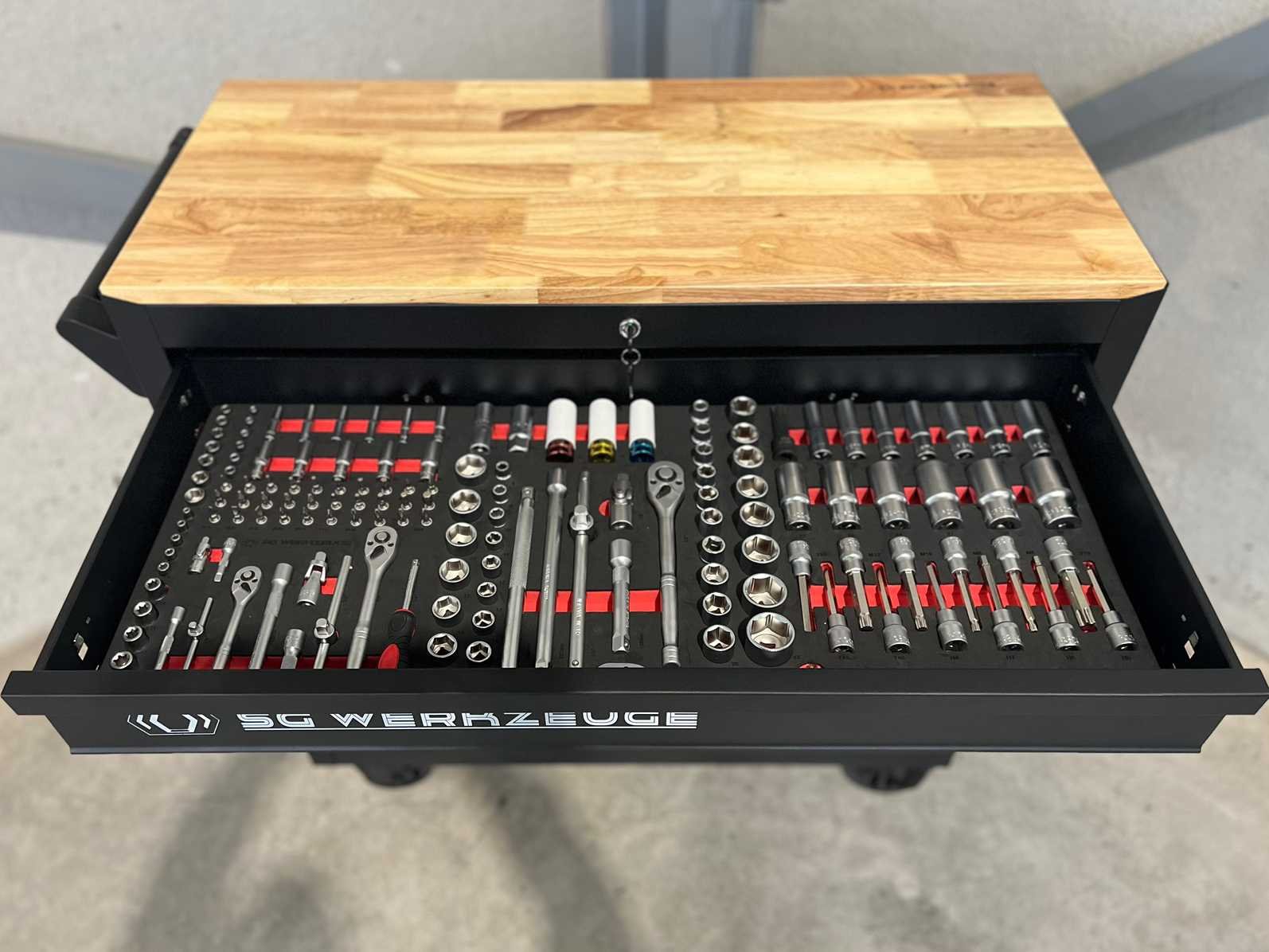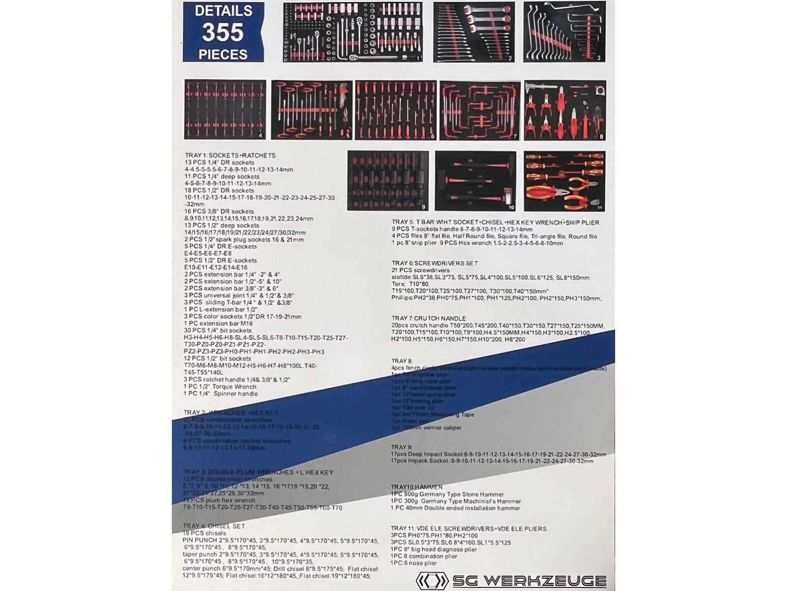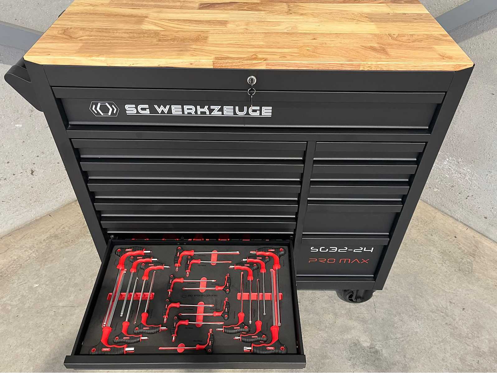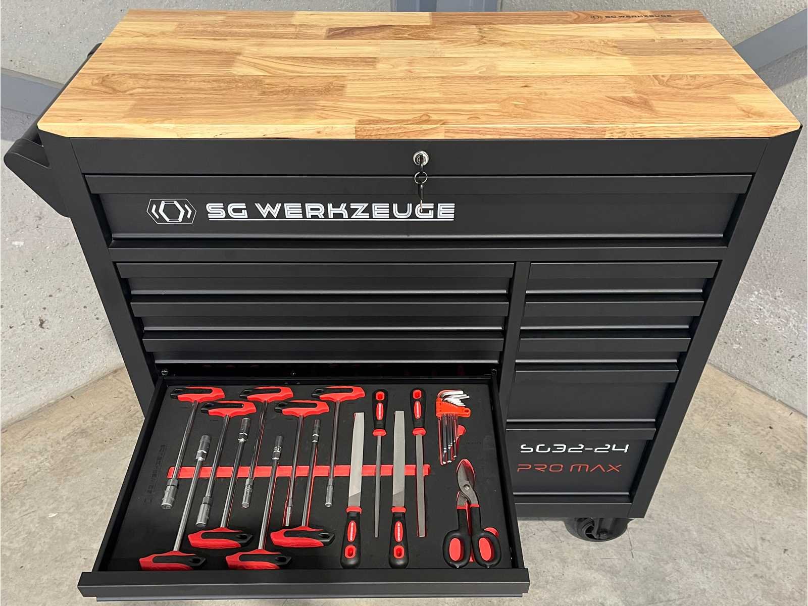 <ul> <li><strong>Merk:</strong> Stahlgruppe</li> <li><strong>Type:</strong> SG32-24</li> <li><strong>Aantal laden:</strong> 14 laden</li> <li><strong>Aantal gevulde laden:</strong> 11 gevulde laden</li> <li><strong>Materiaal:</strong> Chrome Vanadium gereedschap</li> <li><strong>Inhoud:</strong> <ul> <li>3 complete dopsleutelsets (1/2”, 3/8” & 1/4”)</li> <li>momentsleutel (20-210 Nm)</li> <li> ring-steeksleutelset (6-32 mm) + steek & ring-ratelsleutelset (8-19 mm)</li> <li>ringsleutelset (6-32 mm) & Torx sleutelset (T6-T70)</li> <li>beitels en pendrijvers (18 stuks)</li> <li>T-greep dopsleutels ( 6-14 mm) & vijlen (4 stuks)</li> <li>schroevendraaiers (21 stuks)</li> <li>T-greep inbussleutels (10 stuks) & T-greep Torxsleutels (10 stuks)</li> <li>diverse tangen (9 stuks)</li> <li>krachtdoppen (34 stuks)</li> <li>diverse hamers (3 stuks)</li> <li>VDE-gereedschap (9 stuks)</li> <li>enzovoort...</li> </ul> </li> <li><strong>Staat:</strong> ongebruikt, in de originele verpakking</li> </ul> Nee Merk: Stahlgruppe Type: SG32-24