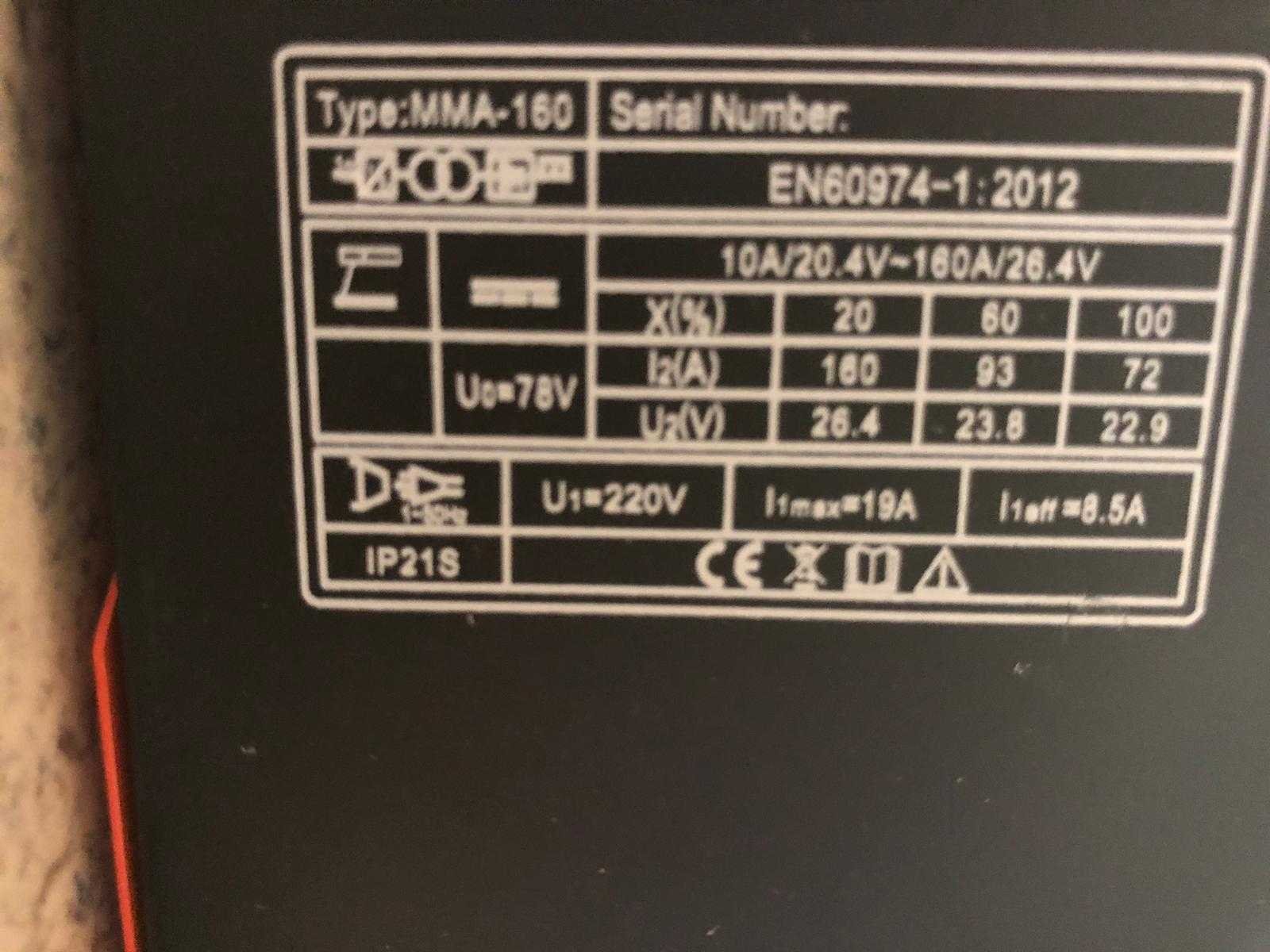 Specificaties Materiaal: Metaal en hittebestendige kunststof Lasmethode: MMA (elektrodelassen) Inclusief: Elektrodehouder, aardklem Vermogen: 3 KVA, 220V Stroomregeling: 10–100A Maximale elektrodedikte: 3.2 mm Isolatieklasse: F Beschermingsklasse: IP21S Inschakelduur: 20% bij 100A / 40°C Open spanning: Max. 78V Efficiëntie: 85% Power factor: 0.7 Nee
