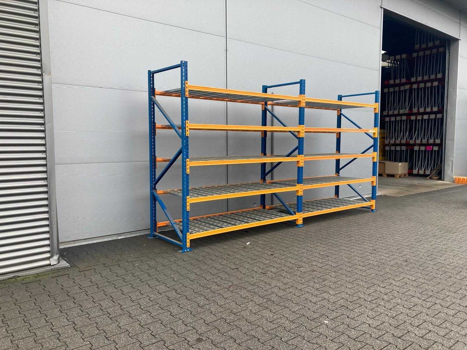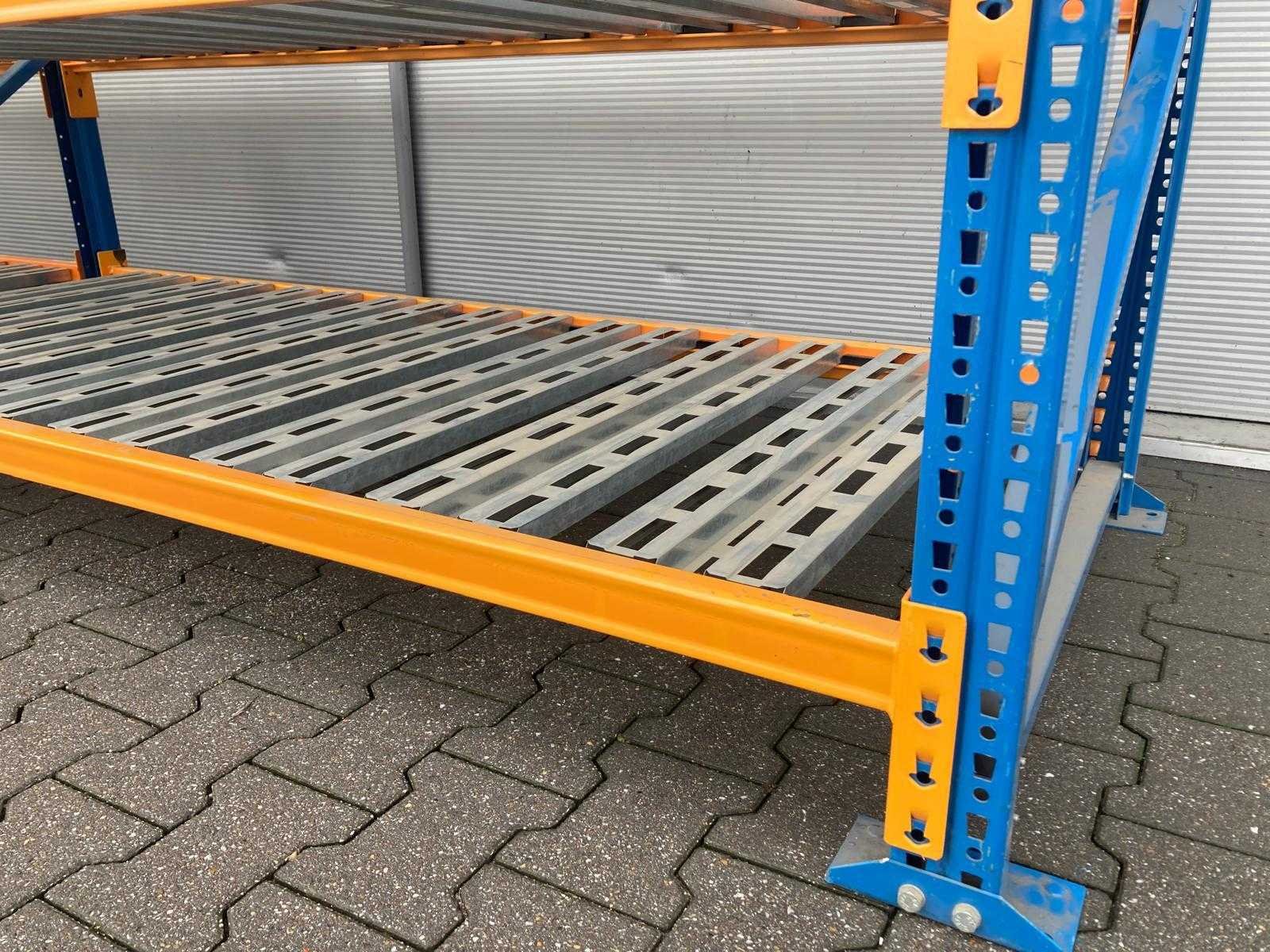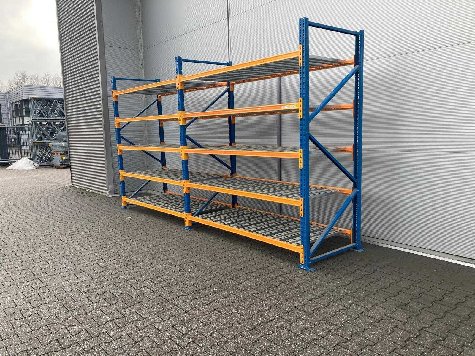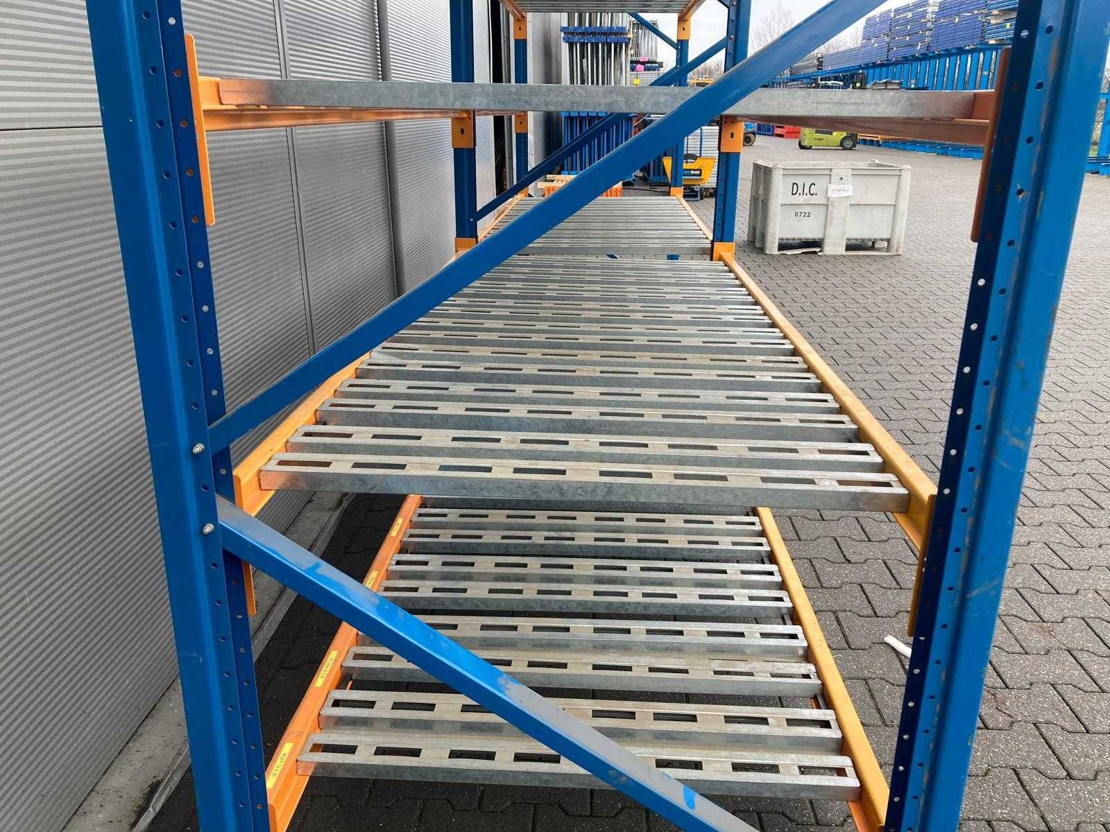 Light duty stelling; 3x staander 2700x980x800mm; 20x ligger 2200x600x35mm; gebundeld; gebruikt; zonder voetjes; 8013*3 / 8014*20 / 8185*10 Nee Merk: Nedcon Aantal secties: 2 Sectie afm. b: 2200mm Sectie diepte: 980mm Sectie afm. h: 2700mm Aantal staanders: 3 Aantal liggers: 20