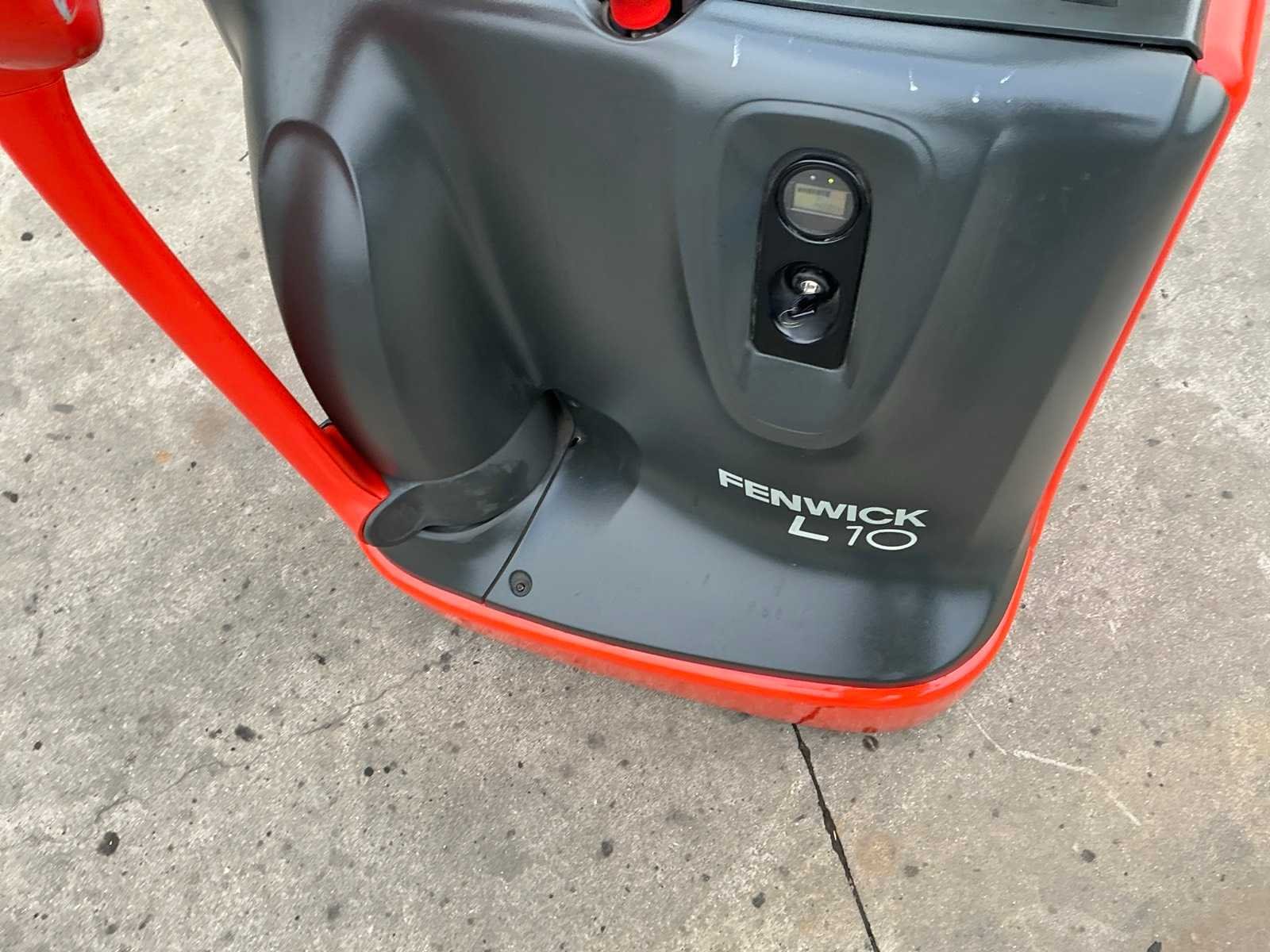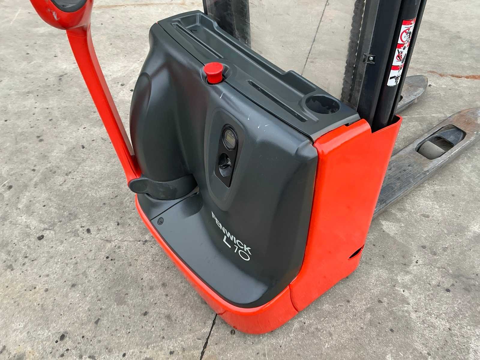 Accu leeg , niet oplaadbaar Nee Merk: Fenwick Type: L10 Bouwjaar: 2019 Serienummer: F21172V01495 Hefvermogen: 1000kg Hefhoogte: 3950mm Lepellengte: 1150mm Afgelezen urenstand: 1420 Eigen gewicht: 900kg Totale afmeting L: 1700mm Totale afmeting Breedte: 800mm Totale afmeting Hoogte: 2400mm