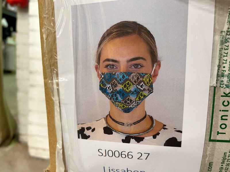 Ongeveer 3500 mondmaskers, diverse kleuren en patronen waaronder bruin, grijs, zit ook in lot 2408