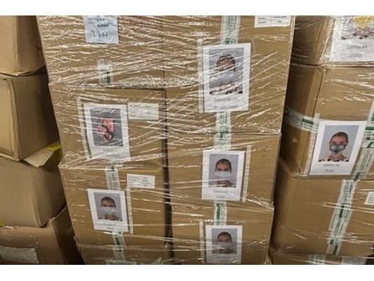 Ongeveer 5000 mondmaskers, diverse kleuren waaronder wit, zwart en blauw, zit ook in lot 2408